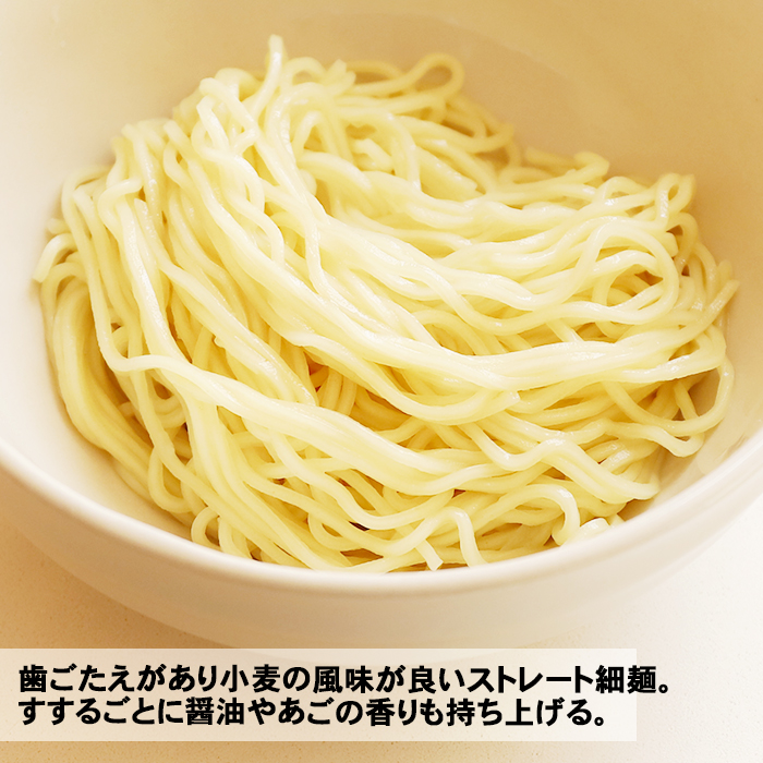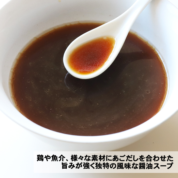焼きあご香る醤油味、香ばしい芳醇な焼きあごとコクと深みのある醤油スープがコシのある麺に絡み、醤油・あご風味の調和のとれた魚介芳醇醤油めんです。